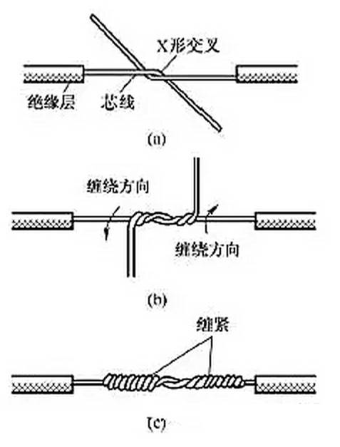 絞合連接是指將需連接導線的芯線直接緊密絞合在一起。銅導線常用絞合連接。